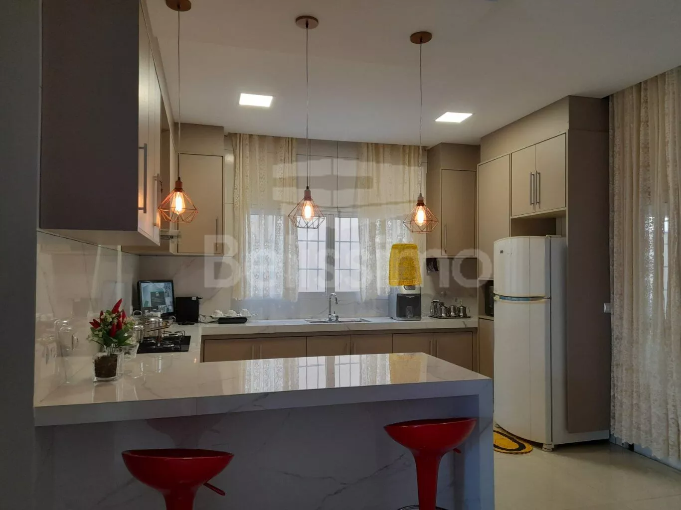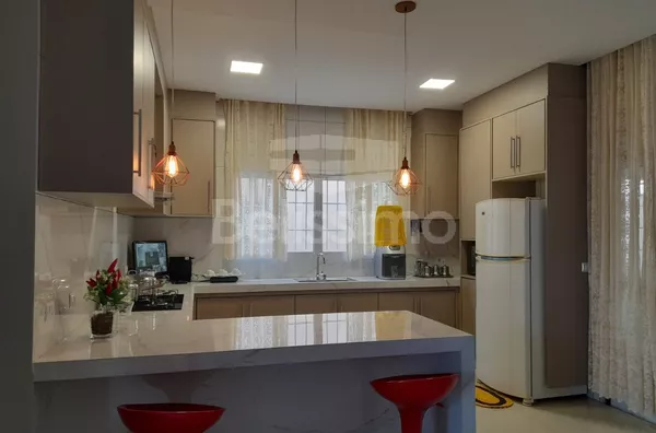 Casa de 3 quartos, sendo 1 suíte, 02 (dois), todos banheiros com armários, box e espelhos, 01(uma) sala de TV, 01 (uma) sala de jantar, 01 (uma) cozinha com armários planejados, cooktop, coifa, área gourmet com armários, 01 (uma) área de serviço, despensa, poço artesiano, garagem coberta para 2 carros.