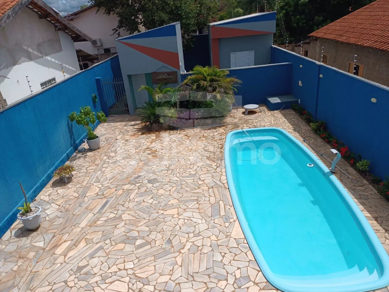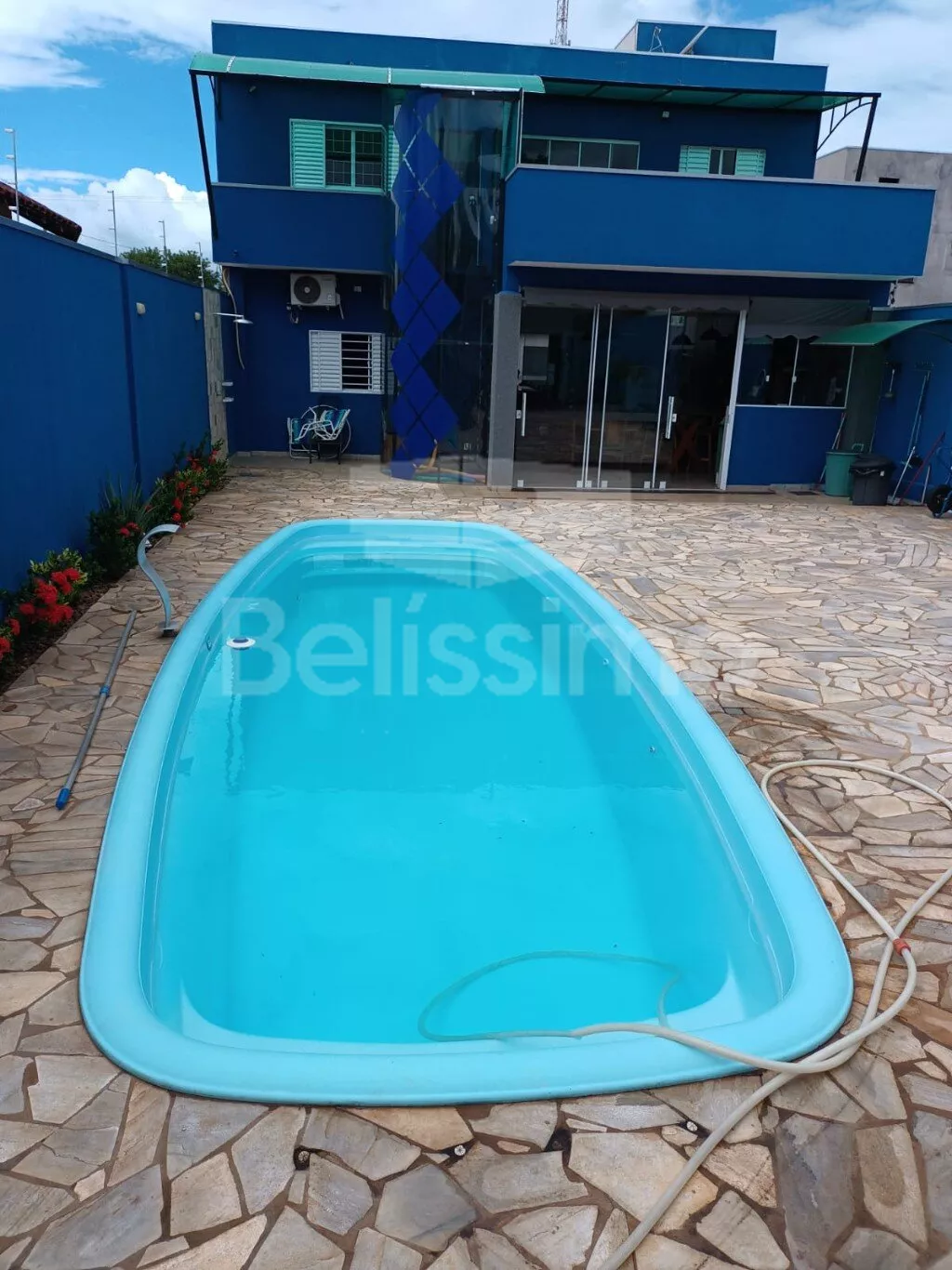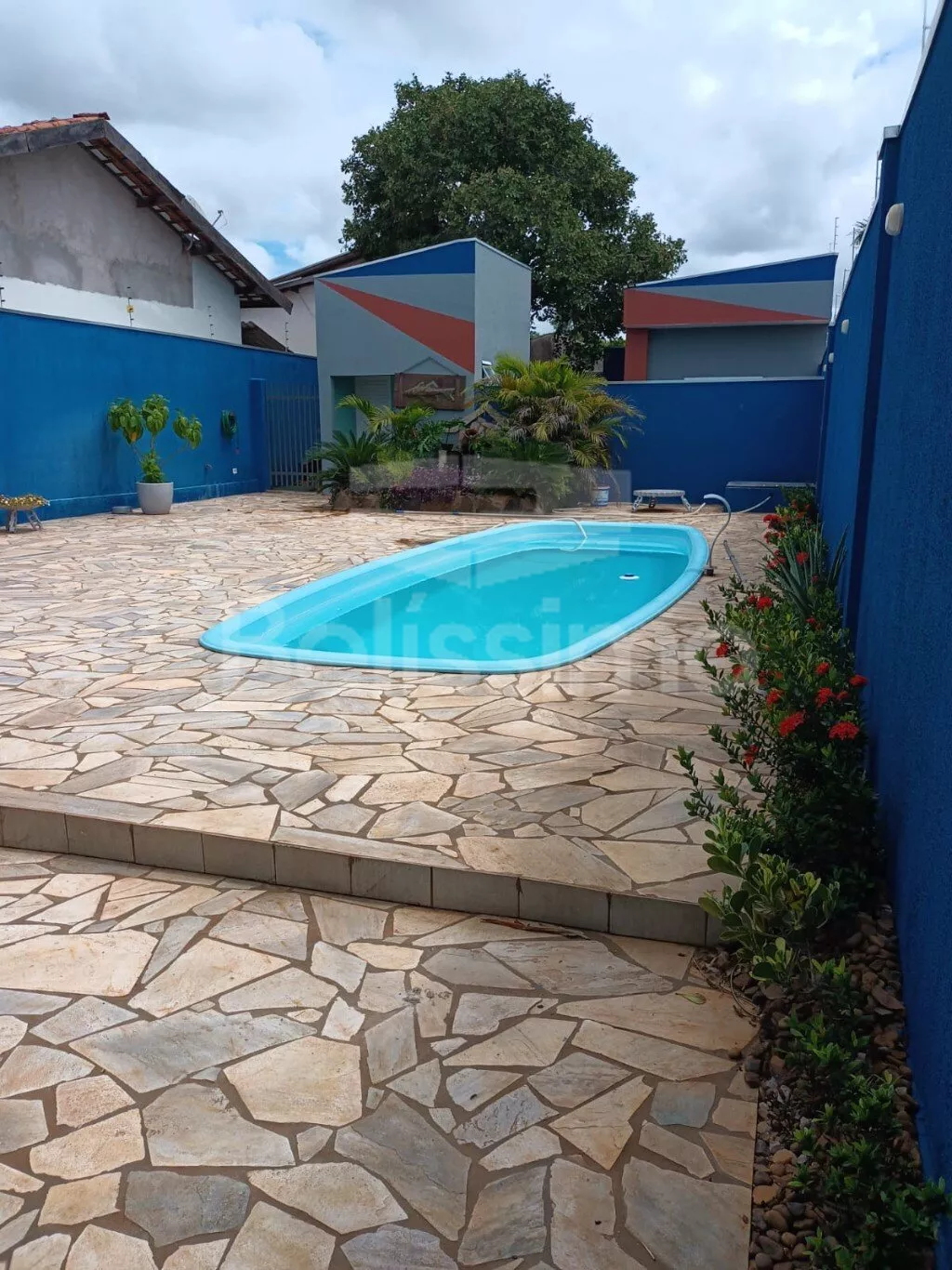 ✅ Piscina cercada por 120m² de pedras São Tomé