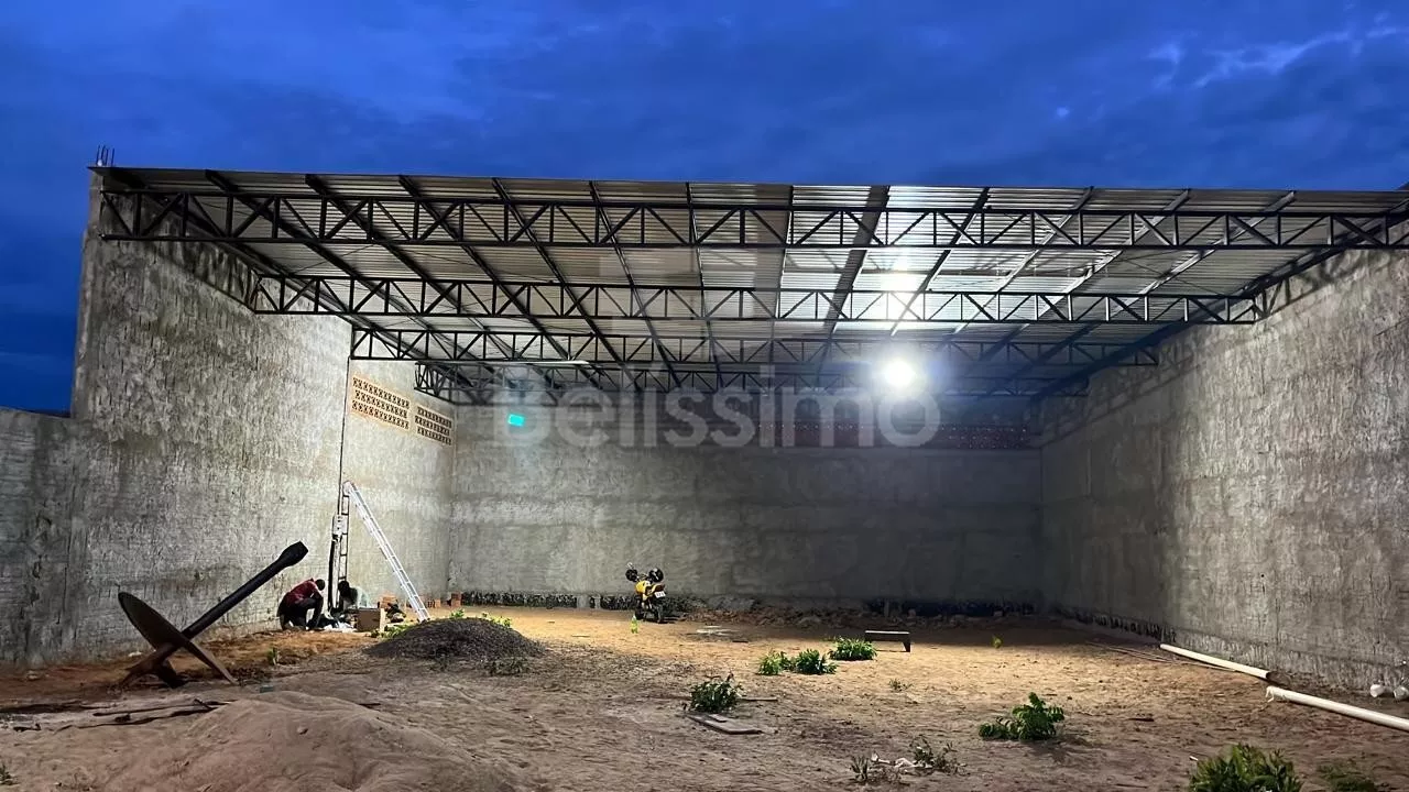 Barracão Contém 12 placas solares, Média de 1.320 m2 de área construída. Equivalente a 3 terrenos de 12,06 × 30, Uma garagem ampla para carros e caminhões (a garagem não é coberta), Consta também na parte inferior de 4 banheiros sendo 2 adaptados para de
